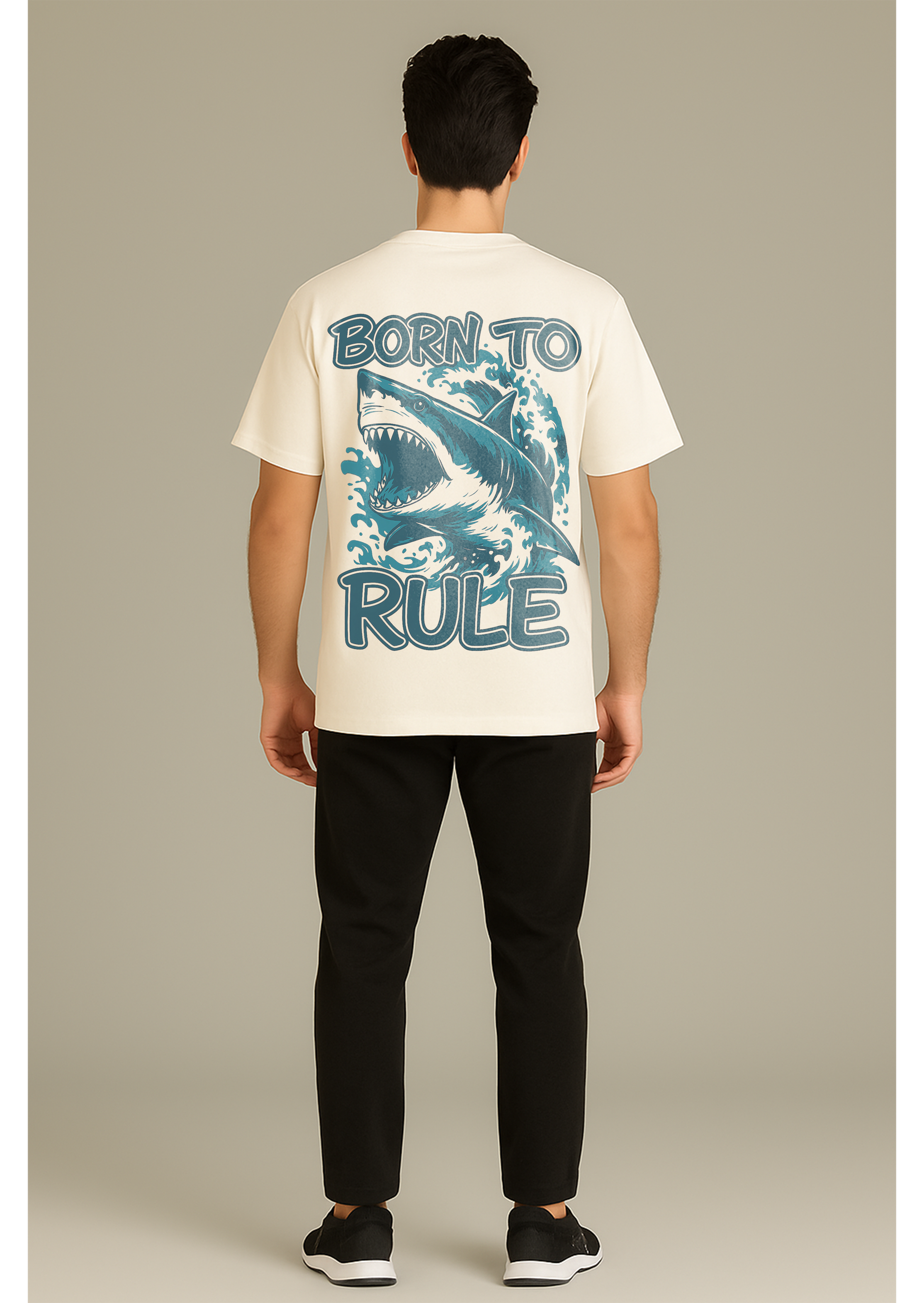 The Born to Rule Oversized T-Shirt embodies fearless streetwear attitude with a bold shark graphic crashing through waves. Designed for those who dare to dominate, this tee represents power, strength, and a lifestyle of striving without limits. Perfect for urban outfits, street culture, and everyday casual wear, it delivers premium comfort with an unapologetic edge.